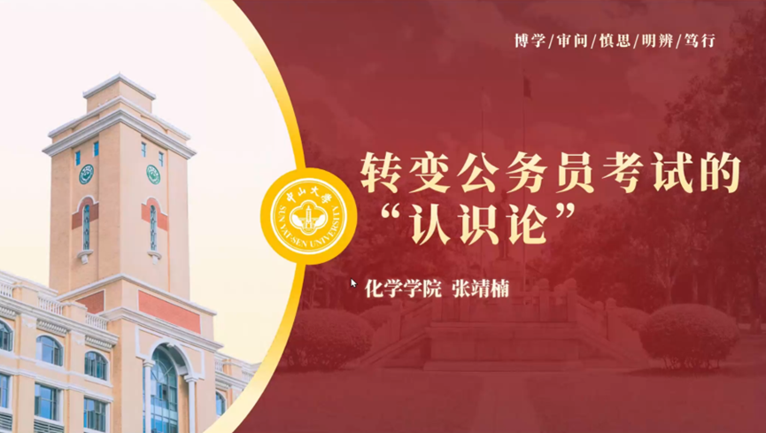 张靖楠师兄为我们分享了他的广东选调备考经验。从对公务员的认知要点,到对公考的认识,再到学习方法,张靖楠师兄通过讲述自身的经历与实践,为我们深刻剖析了备考全流程。他勉励志愿于为人民服务的同学们报考基层工作岗位,在平凡的岗位上实现不平凡的人生价值。
