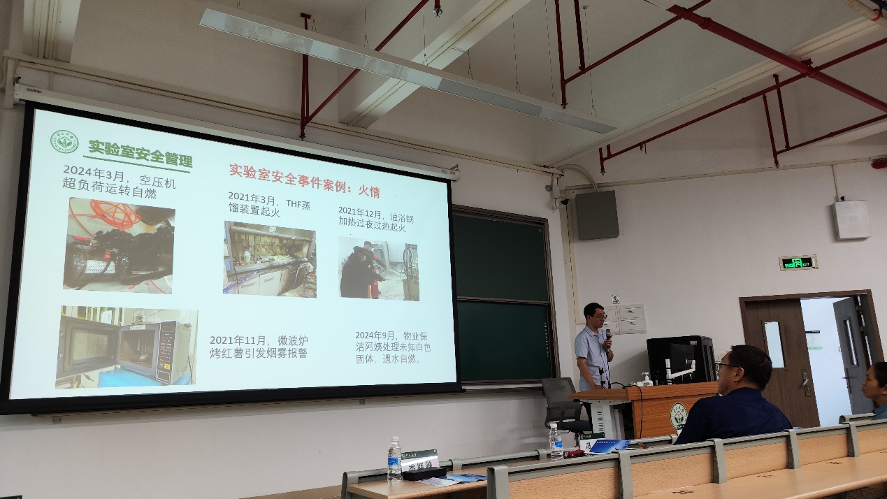 随后,院长助理朱庭顺教授为同学们带来一场系统而严谨的实验室安全培训。他结合真实案例,生动阐释安全规范的重要性,并与现场同学积极互动,让大家在交流中深化“安全第一”的实验意识。