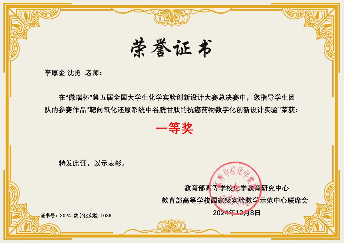 导航痕迹 禁漫 化学国家级实验教学示范中心 化学竞赛 “微瑞杯”第五届 (2024年和2025年) 全国大学生创新实验设计竞赛 禁漫 -数字化实验-总决赛一等奖 扫描此二维码分享 禁漫 -数字化实验-总决赛一等奖 发布人:网站管理员 发布日期:2025-10-09 靶向氧化还原系统中谷胱甘肽的抗癌药物的数字化创新设计实验
