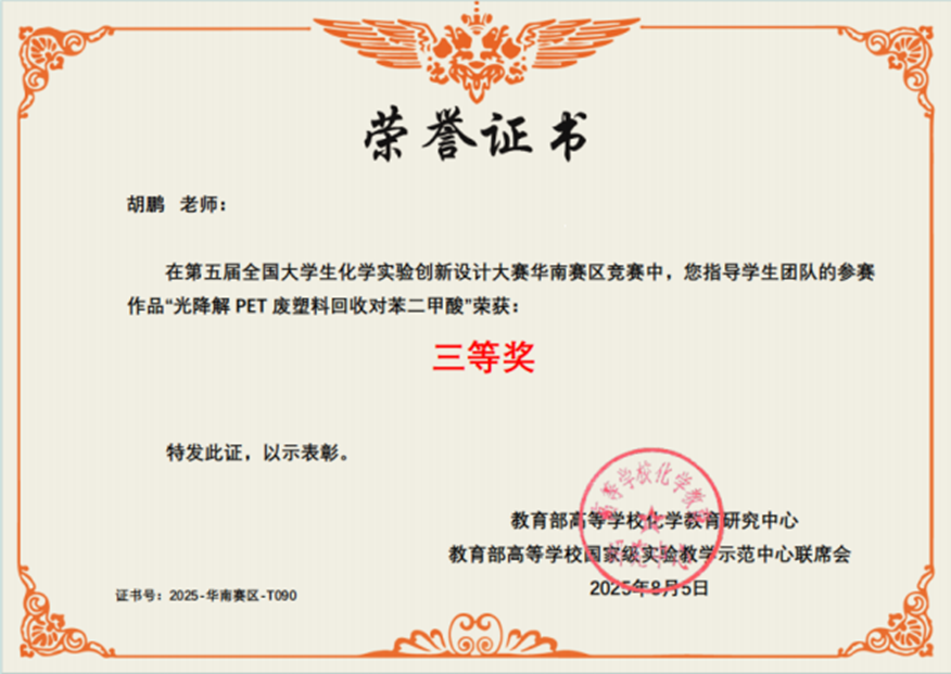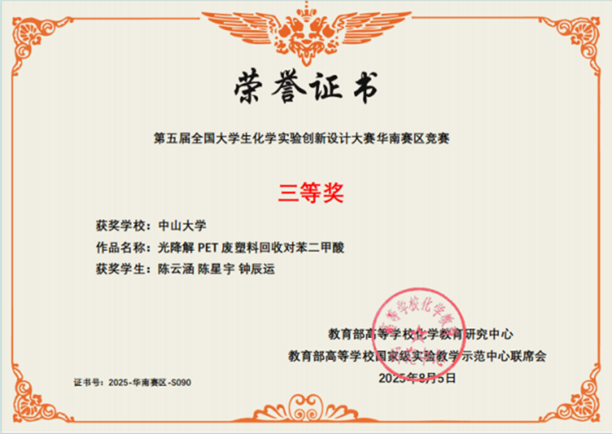 导航痕迹 禁漫 化学国家级实验教学示范中心 化学竞赛 “微瑞杯”第五届 (2024年和2025年) 全国大学生创新实验设计竞赛 禁漫 -新创实验-华南赛区三等奖 扫描此二维码分享 禁漫 -新创实验-华南赛区三等奖 发布人:网站管理员 发布日期:2025-10-09 光降解PET废塑料回收对苯二甲酸