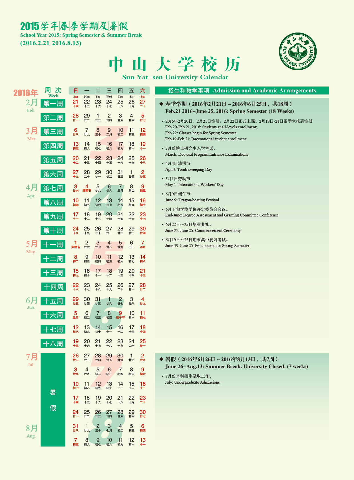 附件2: 2015学年第三学期校历