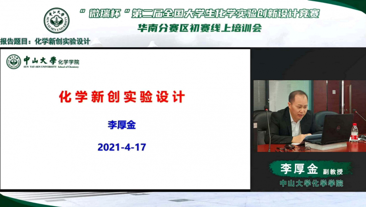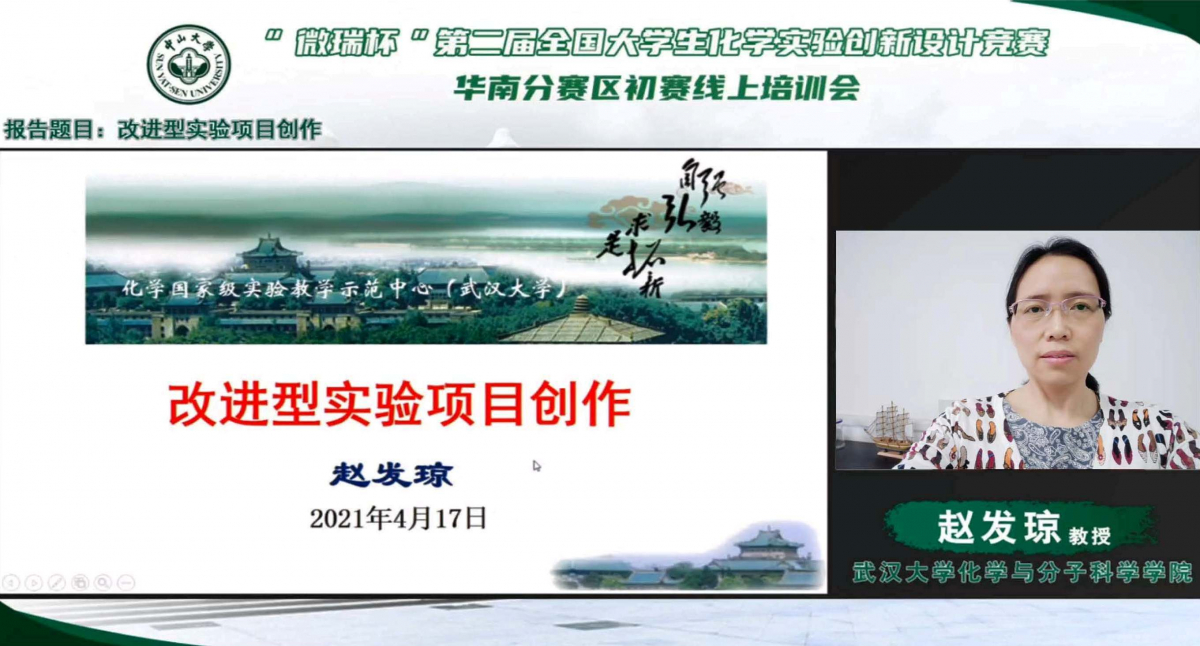 2021年4月17日,禁漫 成功举办了“微瑞杯”第二届全国大学生化学实验创新设计竞赛华南分赛区初赛线上培训会。全国大学生化学实验创新设计竞赛是由中国化学会、高等学校国家级实验教学示范中心联席会主办的全国性大学生学科竞赛。竞赛每年一届,2019年举办了首届,2020年因疫情停办,2021年为第二届。全国分东北、华北、华东、华中、西北、西南、华南共七个分赛区首先进行初赛,然后再进行全国总决赛。禁漫 将承办2021年华南分赛区初赛,目前已有来自广东、福建、湖南、广西、海南的63所高校报名参赛,竞赛将于7月23-26日举办。本次线上培训会的目的是帮助各高校提高参赛作品质量,提升赛事水平。会议特邀南京大学章文伟教授、中国科学技术大学朱平平教授、武汉大学赵发琼教授和禁漫 李厚金副教授分别作了内容详实、生动精彩的大会专题报告。培训活动受到格外重视,吸引了全国各个赛区高校的教师和学生观看会议,线上参会人数多达14000余人,反响远超预期。本次会议由肖华老师主持。