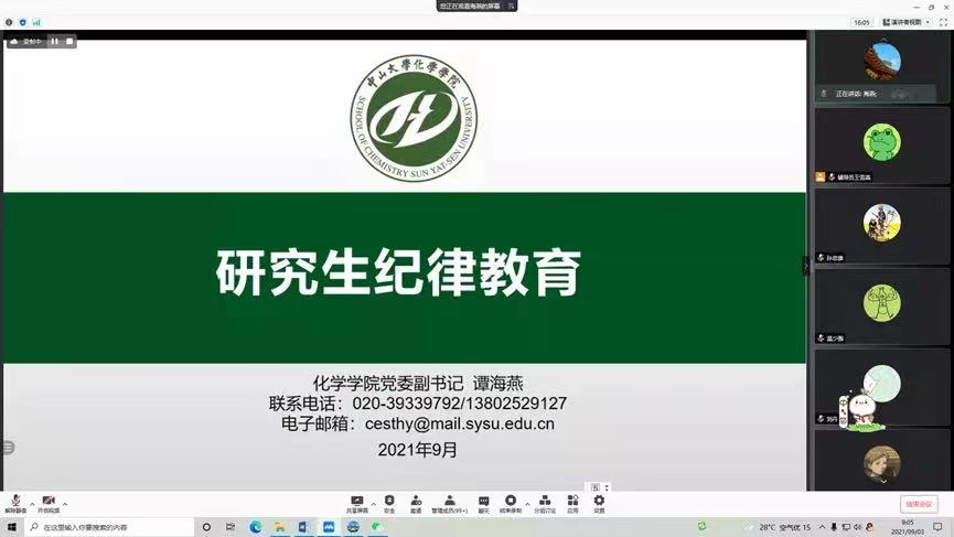 2021年9月3日上午,党委谭海燕副书记、党委组织部专职组织员朱志辉老师、学院院长助理肖小华老师对研究生新生进行了新生入学安全教育与党史教育。下午,青年教师专职辅导员章自寿老师、研究生秘书陈泳镔老师、研究生辅导员王雪燕老师为2021级研究生新生展开了新生学习与生活日常管理规范教育。