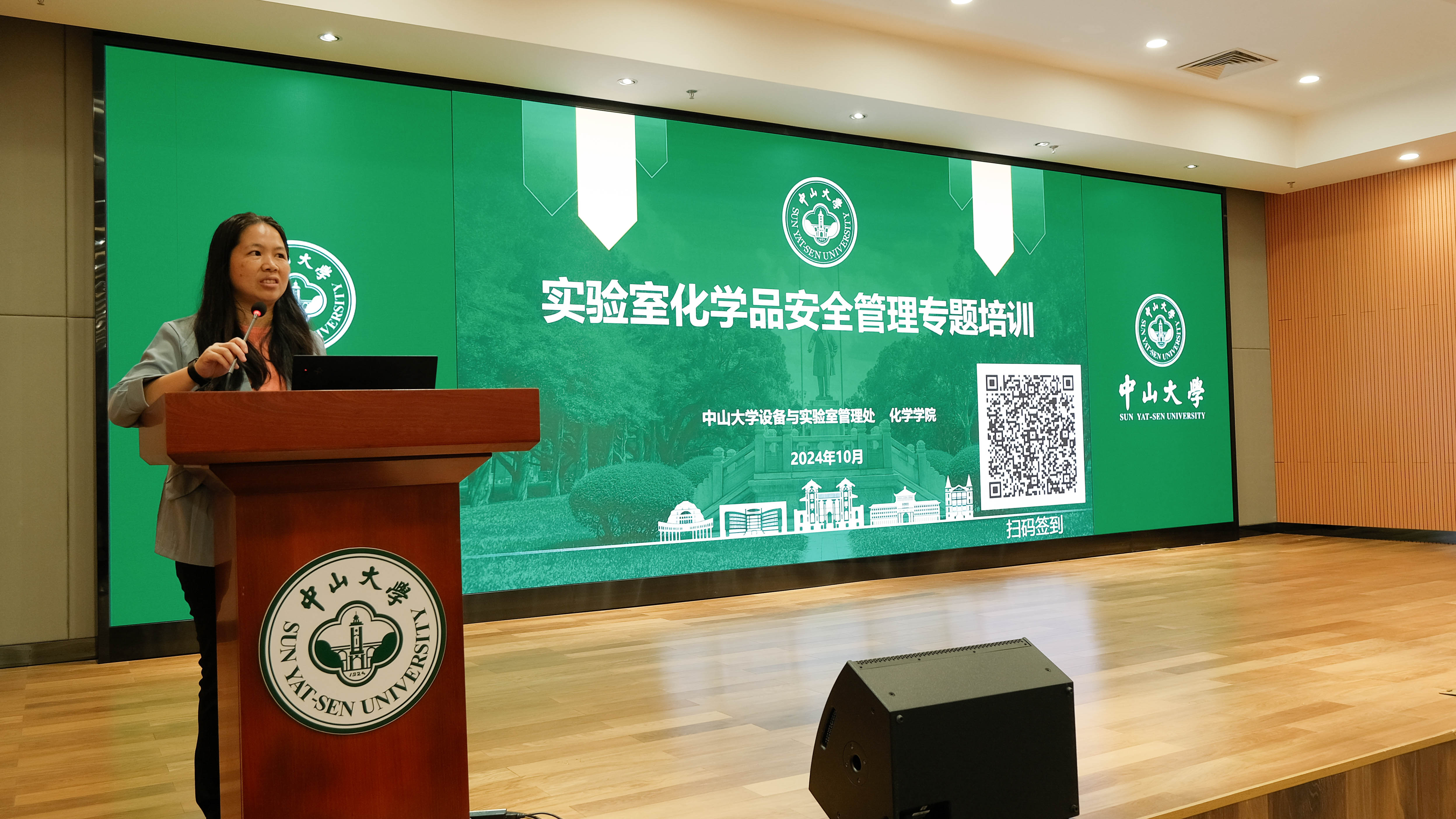 设备与实验室管理处郑仕勇副处长开场致辞,他强调,在百年校庆来临之际,要做好实验室安全管理工作,尤其是实验室化学品安全管理,这不仅是对党的二十大精神和二十届三中全会会议精神的深入贯彻和实践,更是对我们校园安全的责任与担当。他结合近年来高校发生的实验室安全事件,深刻剖析我校化学品安全管理所面临的挑战和薄弱环节,提醒全体师生,安全无小事,在日常实验中要始终保持高度的警惕,严格遵守操作规范,将安全意识深植于心,外化于行,共同营造一个安全、和谐的科研与教学环境,为百年校庆的顺利举行和学校的长远发展提供坚实的安全保障。