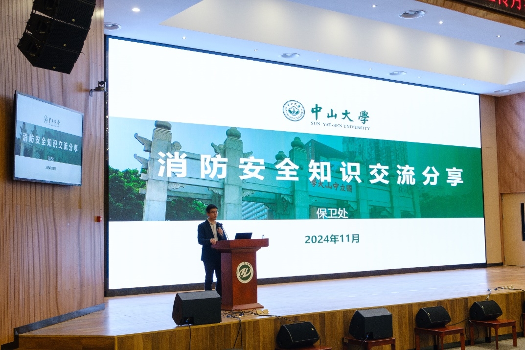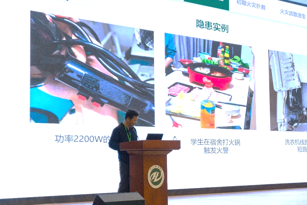 保卫处李胜斌老师作了有关消防安全方面的讲座,重点介绍了实验室安全隐患、消防安全知识以及电动自行车消防安全工作,并结合视频和实例为大家详细降解了消防安全预防和应急处理知识。