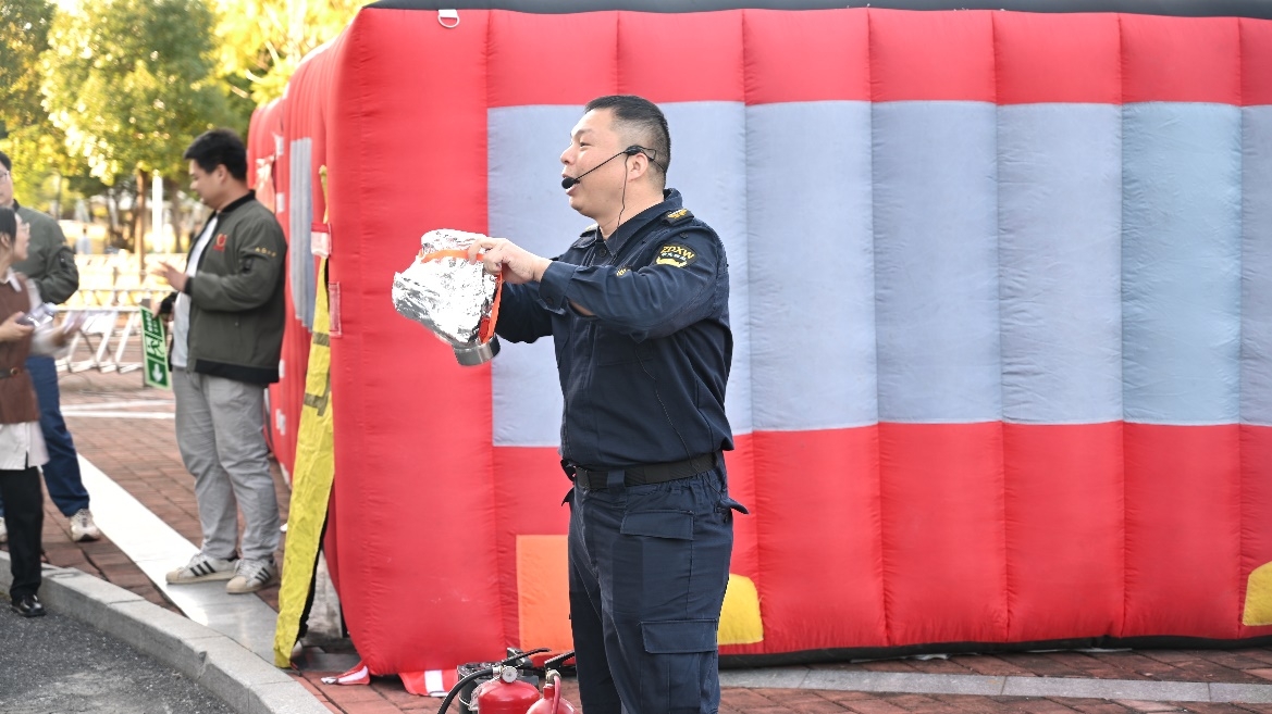 为使全院师生牢固树立实验室安全意识、掌握消防安全知识, 2024年11月29日,在广州市番禺区消防大队、学校保卫处、设备与实验室管理处等职能部门的支持下,“119”消防疏散演练系列活动在东校园化学材料综合楼顺利开展。广州市番禺区消防救援大队大学城救援站指导员徐勃、学校保卫处副处长陈欣然、主管李胜斌,设备与实验室管理处副处长郑仕勇、安全员郭鹏,禁漫 党委书记冯双、副书记谭海燕、院长助理朱庭顺教授,以及化学材料综合楼师生共300余人参加此次活动。演练活动包括消防安全知识讲座、化学材料综合楼消防疏散演练、灭火器材使用及逃生训练帐篷体验等内容。活动由禁漫 院长助理朱庭顺教授主持
