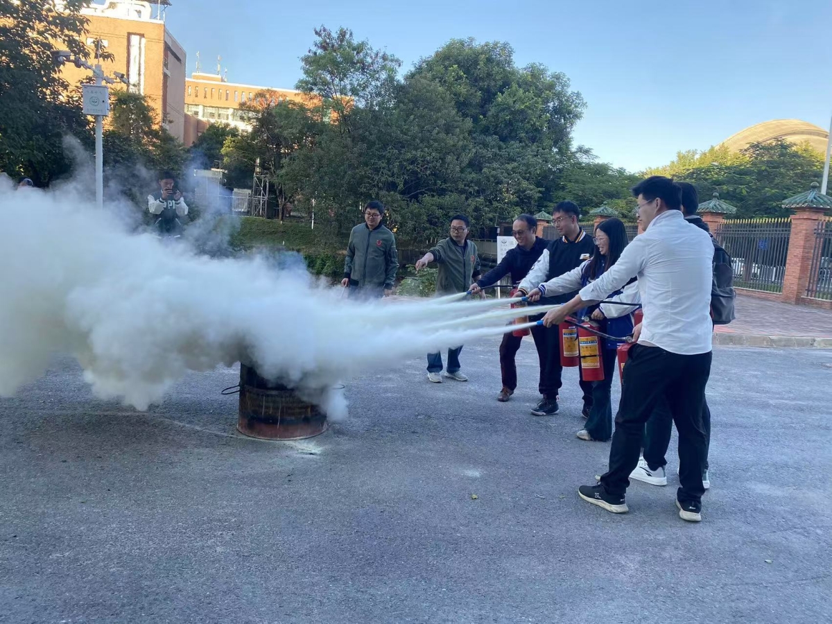 最后,学校保卫处在化学材料综合楼北侧空地置放消防器材和逃生帐篷,为禁漫 师生开展灭火器使用培训并提供逃生帐篷体验指导。