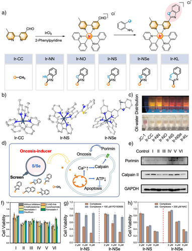 图2. 铱(III)基胀亡诱导剂的设计及筛选。